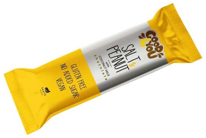 Good4you sós-földimogyorós ízű szelet kókusz alapú mártócsokival 25g Finom sós-földimogyorós íz selymesen kr émes kókusztejcsokoládéba mártva. Gluténmentes, hozzáadott cukor és tejmentes, vegán és paleo. Édes nassolnivaló a nap bármely szakában, melyet könnyen magunkkal vihetünk bárhova. Eritrittel és steviával édesítve. A Good4you sós-földimogyorós ízű szele