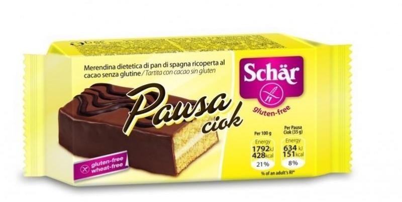 GLT. SCHAR PAUSA CIOK PISKÓTASZELET 30G. Lágy piskóta tejkrémes töltelékkel és kakaós bevonattal. Minden korosztály kedvence lehet, igazi ínyencség édesszájúaknak. Összetevők: cukor, tojás, növényi olaj és zsír (pálma, pálmamag, kókusz)glükóz-fruktóz szirup, rizsliszt 7%, víz, sovány tejpor 6%, kukoricakeményítő, sovány kakaó 1,8%, tejfehérje, kukoricaliszt, rizs