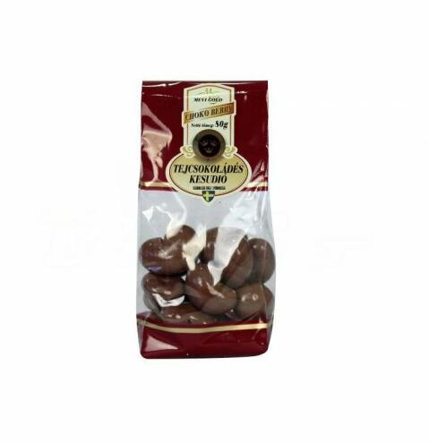 Choko berry tejcsokoládés kesudió 80gKategória: csokoládé drazsék. Összetevők: cukor, kesudió, kakaóvaj, zsíros tejpór, kakaómassza, szója lecitin, vanília, felületkezelő szer: E414, E904. Nyomokban földimogyorót tartalmazhat. Kiszerelés: lédig Súly: 2 kg Kiszerelés: zacskós Súly: 80 g