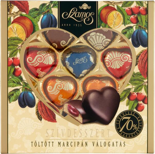 Csokoládé SZAMOS Töltött szívdesszert válogatás díszdoboz 130g