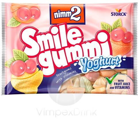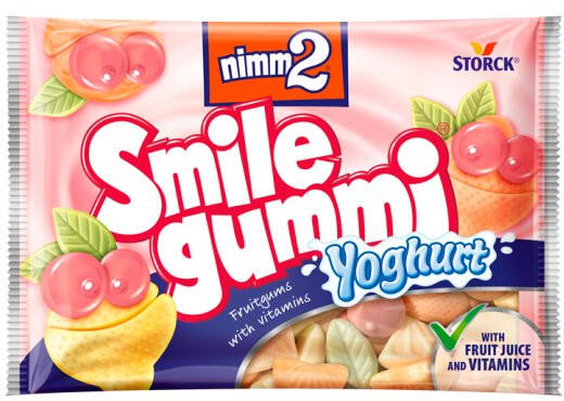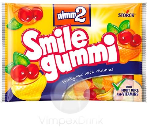 Termékleírás Termék információk Minden egyes nimm2 Smilegummi cukorka hozzáadott vitaminokat tartalmaz. Összetétel Glükózszirup, Cukor, Gyümölcslé (22%) sűrítményből (szőlő, bodza), Sovány joghurtpor (5,5%), Étkezési zselatin, Étkezési sav (citromsav, tejsav), Zselésítő anyag: pektin, Aromák, Hidrolizált tejfehérje , Színező anyagok (feketerépalé sűrítmény, sp