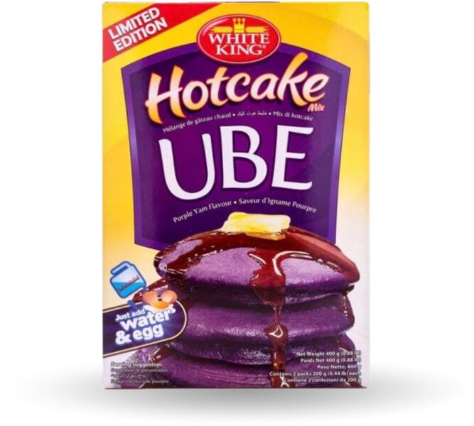 A White King Ube Cake Mix elragadó csavart kínál a hagyományos süteményekhez az ube egyedi ízével, amely egy lila édesburgonya, amelyet gyakran használnak a filippínó desszertekben. Ez a keverék leegyszerűsíti a puha és ízletes ube sütemények elkészítésének folyamatát. Összetevők: Dúsított búzaliszt, cukor, ube, sütőpor, só és mesterséges aromák.