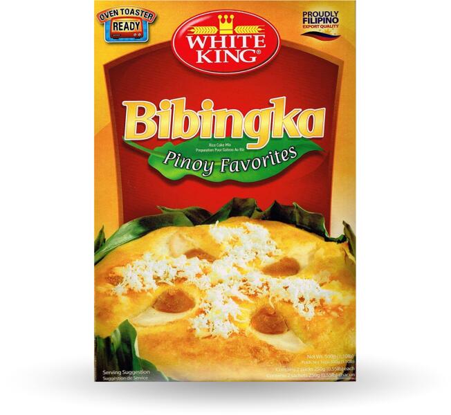 A White King Bibinka Mix egy praktikus és egyszerű keverék, amely lehetővé teszi a Bibinka, egy népszerű filippínó rizstorta elkészítését, amelyet hagyományosan különleges alkalmakkor és ünnepeken fogyasztanak. Összetevők: rizsliszt, cukor, kókusztejpor, módosított keményítő, sütőpor, só, mesterséges aroma, annatto kivonat (színezék).