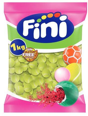 Citrom és lime ízű, savanyú porral töltött rágógumi. Fini Teniszlabda Gluténmentes Rágógumi 1000g