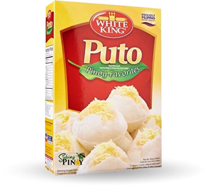 White King Puto Mix kényelmes keverék a Puto, egy hagyományos filippínó párolt rizstorta készítéséhez. A puto egy népszerű snack vagy desszert a Fülöp-szigeteken, lágy és enyhén édes állagáról ismert. Ezzel a keverékkel könnyen elkészíthető ez a népszerű filippínó finomság. Használat: A Puto White King Puto Mix-et általában vízzel és néha kókusztejjel keverjü