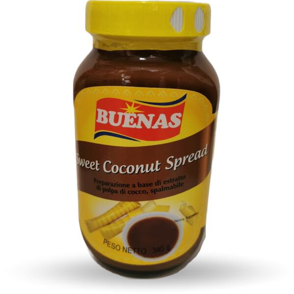 A Buenas Sweet Coconut Spread egy finom és sokoldalú kenhető krém friss kókuszdióból. Gazdag, krémes állaga és édes kókuszos íze ideális kenyérre, kekszre vagy süteményre. Élvezze a desszertek csodálatos feltéteként, vagy keverje kedvenc receptjeibe, hogy még egy kis édességet kapjon. Ez az édes kókuszos krém kiválóan alkalmas pirítósra, palacsintára és gofrira. Ha