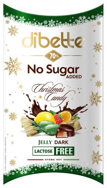 Étcsokoládéval mártott citrom, narancs és málnaízű zselés szaloncukor, hozzáadott cukor nélkül, édesítőszerekkel, laktózmentes.