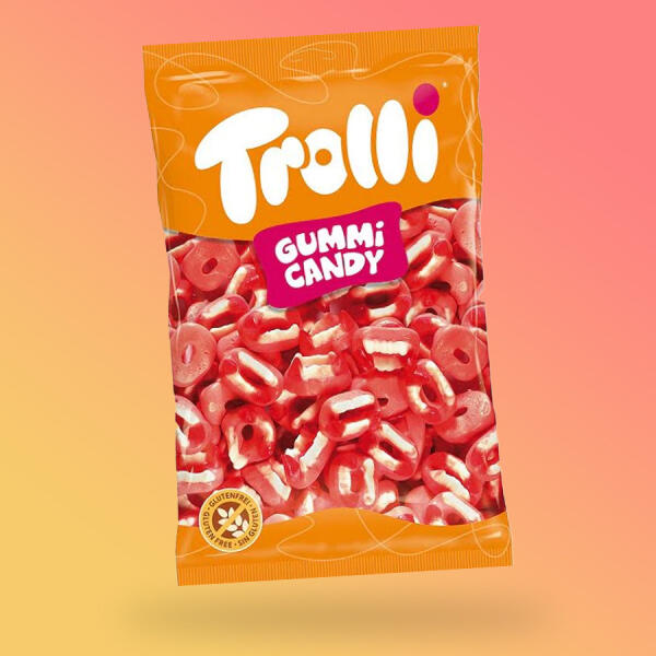 Trolli Dracula Tanden Véres Vámpírfogak Gumicukor. töltőtömeg: 1kg Összetevők: glükózszirup, cukor, zselatin, savanyító (citromsav, tejsav), nedvesítőszer (szorbit), aromák, színezék (kármin), fényezőanyag (méhviasz fehér és sárga, karnaubaviasz). Tápanyag információ 100g-ban Energia 337kcal Zsír 0,1g melyekből telített zsírsavak 0,1g Szénhidrát 79g melyekből cukr