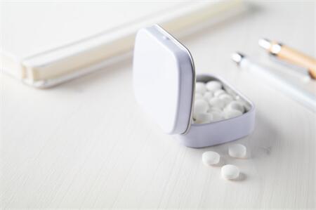 Téglalap alakú fémdoboz körülbelül 25 gramm mentolos cukorkával. Emblémázását, feliratozást vállaljuk.