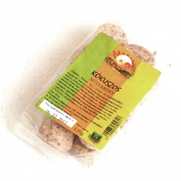 150 g-os sütemény; Naturbit termék a gluténmentes édességek kedvelőinek. OÉTI Szám: K/63/2014. Glutén-, tej-, tojás-, szójamentes. Nettó tömeg 150 g. Puszedlik vaníliás tésztából, sok finom kókuszreszelékkel.