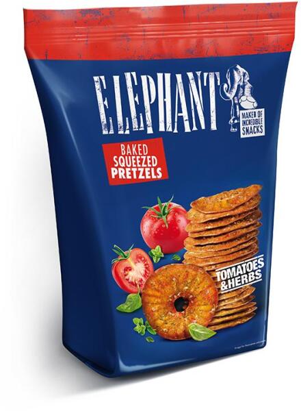 Elephant Chips Taller Paradicsomos Fűszeres Összetevők: fehér búzaliszt, növényi olaj (repce), 6% fűszerkészítmény (maltodextrin, paradicsom, dextróz, cukor, só, hagyma, petrezselyem, bazsalikom, oregánó, élesztőkivonat, citrom, természetes aroma, paprika kivonat, csomósodást és lesülést gátló anyag: szilícium-dioxid; fokhagyma, antioxidáns: rozmaring kivonat), cukor, á
