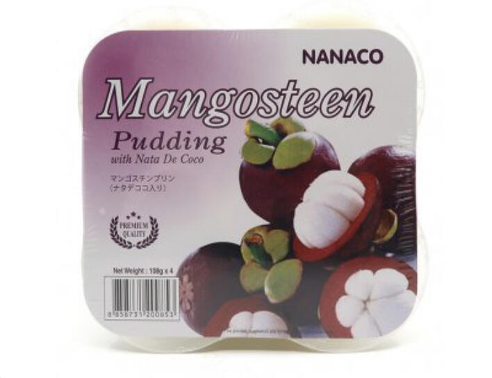 Zselatin gyümölcspudingok Nanaco mangosztán 108g x 4 db Összetevők: Víz, cukor, erjesztett kókuszlé, gyümölcslevek: mangosztán E407, E133, E330. Tápértékek 100 grammonként : Energia 80 kcal, Zsírok 0g ebből telített zsírsavak 0g, Szénhidrátok 20g ebből cukrok 20g Fehérjék 0g. Só 0,1 g. Származási ország: Thaiföld