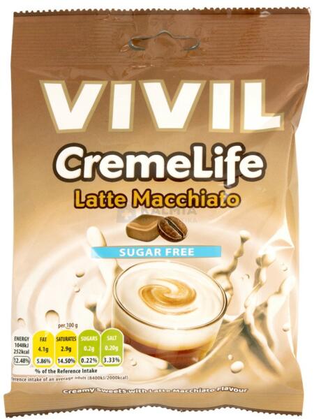 Kávé ízesítésű cukormentes töltetlen keménycukorka édesítőszerrel.