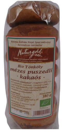 Naturgold bio tönköly mézes puszedli kakaós kézzel készült bio mézes puszedli kakaóban félig mártva. 180 g-os bio tönköly mézes puszedli; Naturgold termék az egészséges élelmiszerek kedvelőinek.