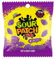 Sour Patch Kids Grape szőlő ízű savanyú gumicukor. töltőtömeg: 101g Összetevők: cukor, invert cukor szirup, glükózszirup, keményítő savak (almasav, tartaric), színezékek (antocianinok), savasság szabályozó (nátrium hidroxid), aroma. Átlagos tápérték 100g-ban Energia 375kcal Zsír 0g melyekből telített zsírsavak 0g Szénhidrát 92,5g melyekből cukrok 65g Fehérje 0g Só