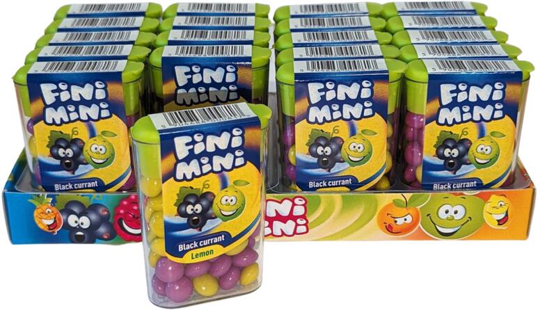 Fini Mini fekete ribizli-citrom ízű cukorka drazsé 16g Hivatalos magyarországi forgalmazótól. Leírás: Kiszerelés: 16g