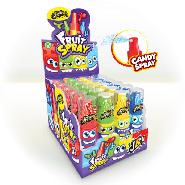 Johny Bee Gyümölcs ízű cukor spray 24x20ml Hivatalos magyarországi forgalmazótól. Leírás: Folyékony édesség spray Összetevők: Glükóz-fruktóz szirup, víz, savanyúságot szabályozó anyagok: citromsav, almasav; aromák, tartósítószer: kálium-szorbát. Tápértékre vonatkozó adatok: Átlagos tápérték 100g termékben: Energia: 1054 kJ/248 kcal Zsír: 0 g ebből telített z