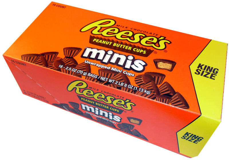 Reese mogyoróvajas csészék Mini King Size 16x70 g Kiváló miniatűr csokoládé cupcake-k puha mogyoróvajjal töltve. Hozzávalók: Tejcsokoládé (cukor, kakaóvaj, csokoládé. Sovány tej, tejzsír , laktóz, szójalecitin . Poliglicerin-poliricinoleát, emulgeálószer), földimogyoró, cukor, dextróz. Kakaóvaj, legfeljebb 2% tartalmaz: részben hidrogénezett növényi olajat (pálmama