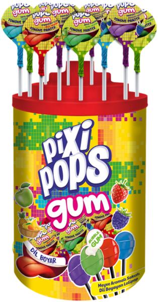 Pixipops Gum nyalóka nyelvfestő 4 íz 100x16g Hivatalos magyarországi forgalmazótól. Leírás: Vegyes gyümölcs ízű savanyú nyalókarágó. Nyelvfestős nyalóka rágógumival, 4 féle ízben.