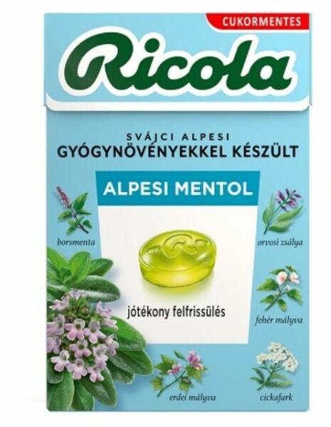 Ricola 40g gyógynövény cukorka alpin fresh Hivatalos magyarországi forgalmazótól. Leírás: Ricola Alpin Fresh svájci gyógynövény cukorkák, cukormentes. Frissítő, mint a jeges patak nyár közepén: az Alpin Fresh cukorkák a gyógynövénykivonatoknak és az illóolajoknak köszönhetik különlegesen frissítő ízüket. Frissít és jótékony hatású a torokra. A Ricola Alpin Fre