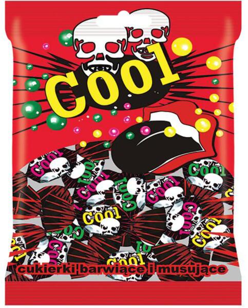 COOL pezsgős, nyelvfestős kemény cukorka 100g Hivatalos magyarországi forgalmazótól. Leírás: Alma, citrom, vegyes gyümölcs ízű nyelvfestős kemény cukorkák keveréke változó arányokban, pezsgős töltelékkel Összetevők : cukor, glükóz szirup, pezsgős töltelék 12,5% (cukor, savanyúságot szabályozó anyag- citromsav, és nátrium-karbonátok), savanyúságot szabályozó