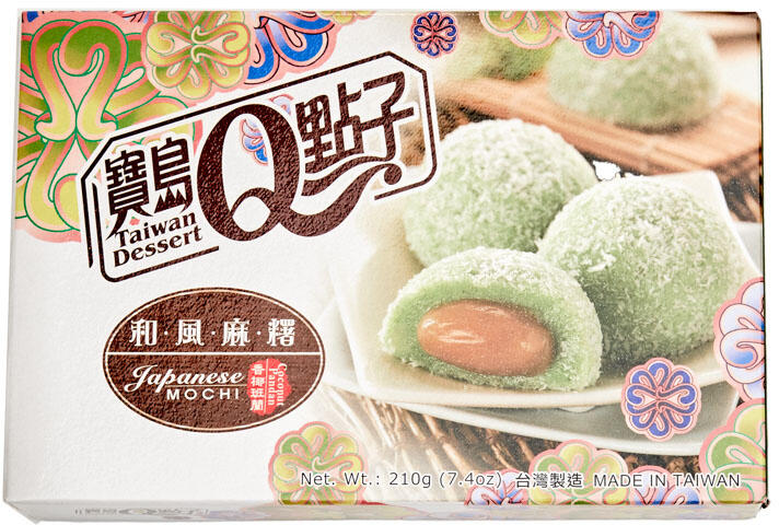 Japán süti Mochi Bamboo House Taro 210g Hagyományos japán különlegesség Hozzávalók: Maláta 47%, taro paszta 35% (maltóz, babpaszta, taro, cukor, pálmaolaj). Ragadós rizspor 6%, köles 3%, cukor 5%. Pálmaolaj 1%, színezék 1% (E133, E129). Sűrítőanyag (E1442) 1%, Édesítőszer (E420) 0,8%. Fűszerek 0,195%, tartósítószer (E200) 0,005%. Tápértékek 100 grammonként: Energia 1