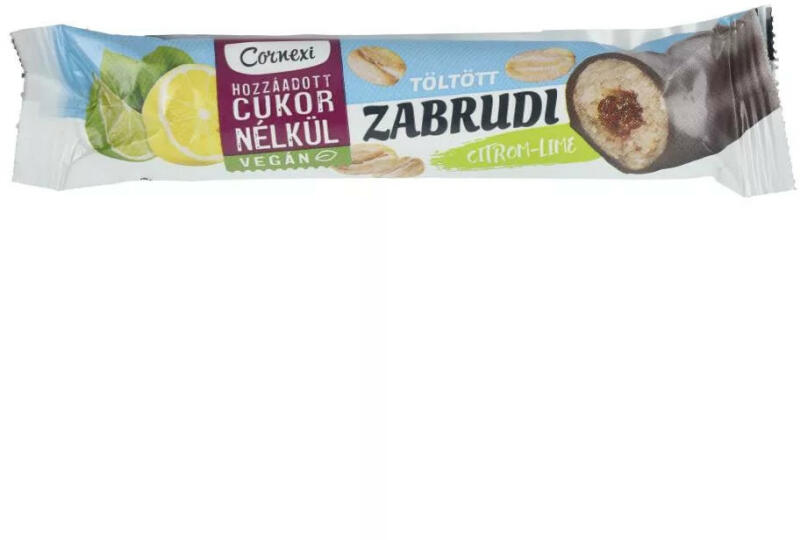 Citrom-lime töltelékkel töltött zabrúd kakaós bevonattal, édesítőszerrel, hozzáadott cukor nélkül. CORNEXI ZABRUDI CITROM-LIME TÖLTELÉKKEL 30G Citrom-lime töltelékkel töltött zabrúd kakaós bevonattal, édesítőszerrel, hozzáadott cukor nélkül. Összetevők: Zabpehely 34%, kakaós bevonómassza édesítőszerrel 17% [édesítőszer: maltit; teljes mértékben hidrogénezett