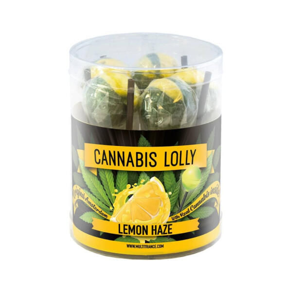 Kender és citrom ízesítésű kannabisz nyalóka 10 db - THC-mentes Lemon Haze Kannabisz Nyalóka THC-mentes 100%-ig legális Kender és citrom ízesítés 17 g / nyalóka Összetevők: Glükóz szirup, cukor, savanyító szer (citromsav (E330)), ízesítés (kenderolaj), színezékek (E101, E132). Tápérték táblázat Tartal om 100 g termékben Egy adagban (17 g) Energia 1666 kJ / 392 kcal 28