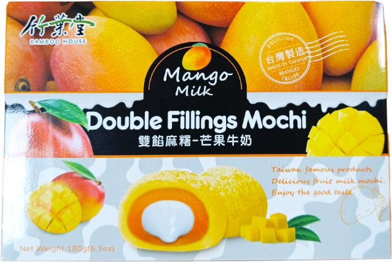 DOUBLE FILLINGS MANGÓ MOCHIKiszerelés: 180 gÖsszetevők:A Mangó Mochi termék tartalmaz tojást és tejet!Figyelem: A csomagolás tartalmaz egy oxigén elvonó tasakot, hogy a doboz tartalmának eredeti minősége megmaradhasson, és elszívja a nedvességet. NE EGYE MEG EZT A TASAKOT! Átlagos tápérték 30 g termékben:Energia: 106 kcalZsír: 0,8 g-amelyből telített zsírsavak: 0,5 gSzén