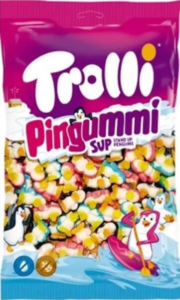 Trolli Pingummi 1kg Zselés pingvinek Málna, eper, fekete ribizli és piros bogyós ízzel. . Hozzávalók: Glükóz szirup; Cukor; zselatin. Savanyító szerek: citromsav, tejsav. Zselésítő anyag: pektin. Színező élelmiszerek (feketeribizli, sárgarépa, édesburgonya, áfonya). Ízek; Színezék: kurkumin, briliánskék FCF. Polírozó anyagok: méhviasz, fehér és sárga, karnaubaviasz.