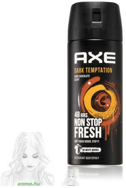 Ha most megrendeled, akár már holnap nálad lehet! Az Axe Dark Temptation férfi spray dezodor 150ml egy hatékony és kellemes illatú dezodor, amely egész nap frissességet biztosít, miközben megvédi a bőrt az izzadástól és kellemetlen szagoktól. A termék könnyen használható, és hosszantartó hatása miatt ideális választás a mindennapi használatra. Az Axe Dark Temptation fé