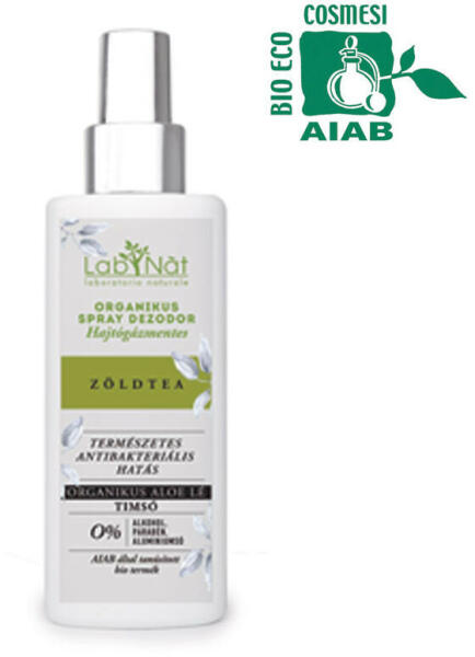 AIAB által tanúsított dezodor spray (vapo), biogazdálkodásból származó összetevőkkel. Természetes antibakteriális hatás: a potassium alum (timsó) csökkenti a baktériumok szaporodását, ennek következtében a kellemetlen testszagot. Bio gazdálkodásból származó aloe verával , ami puhává teszi a bőrt, emellett gyulladáscsökkentő hatással bír. Hatékony 24 órán át ta