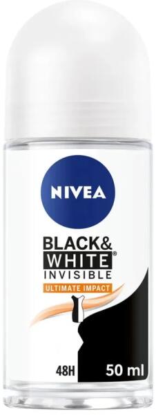 A Nivea Black & White Invisible Ultimate Impact golyós dezodor gyengéd összetételű izzadásgátló így bőre szabadon fog lélegezni. Ugyanakkor nem hagy fehér nyomokat a ruházaton. Alkalmazza tiszta és száraz bőrre. Mindennapos használatra, minden bőrtípusra.