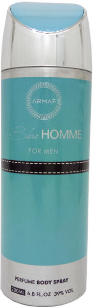 A Blue Homme for Men egy aromás fougere illat, amely felfrissít és aromás esszenciákkal járja át a testet. Az Armaf Blue Homme emlékeztetni fogja Önt Giorgio Armani Acqua Di Gio Profumo illatára. Az illat friss citrusos bergamottal, a szerecsendió, a rozmaring és a jázmin virágos szívére rétegzett grapefruitokkal nyílik, amely a cédrusfa, a borostyán, a tölgymoha és a pacsuli