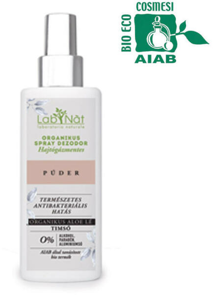 AIAB által tanúsított dezodor spray (vapo), biogazdálkodásból származó összetevőkkel. Természetes antibakteriális hatás: a potassium alum (timsó) csökkenti a baktériumok szaporodását, ennek következtében a kellemetlen testszagot. Bio gazdálkodásból származó aloe verával , ami puhává teszi a bőrt, emellett gyulladáscsökkentő hatással bír. Hatékony 24 órán át ta