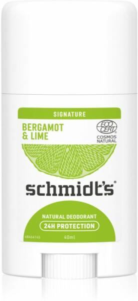 Schmidt's Bergamot + Lime, 40 g, dezodorok nőknek, A minőségi Schmidt's Bergamot + Lime dezodor hatékonyan győzi le a kellemetlen szagokat, hosszan tartó komfortérzetet és frissességet nyújt. Tulajdonságok: véd a kellemetlen szagoktól hosszan tartó frissességérzetet biztosít hosszan tartó komfort- és tisztaságérzetet nyújt Összetétel: vegán termék nem tartalmaz alumínium