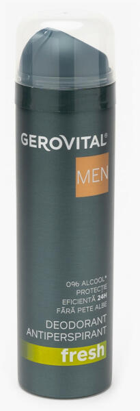 Gerovital Men Fresh dezodor spray, 150 ml Az egyedülálló dezodor-izzadásgátló formula, alkoholmentes*, hosszan tartó férfias illattal, egész nap hatékony védelmet nyújt az izzadás ellen. Nincs fehér folt a ruhán! Fás, vizes illat, elegáns és férfias. Az illat a friss citrusok - grapefruit, keserű narancs, citrom - jegyeivel nyit, míg a levendula, a zsálya és a tengeri szell