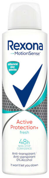 Rexona női deo SPRAY 150ml - Active Protection Fresh Nagyhatékonyságú izzadásgátló dezodor a hosszantartó védelemért. A Rexona Active Protection+Fresh küzd a kellemetlen testszagot okozó baktériumokkal és a Motionsense technológia 48 órás védelmével egész nap átélheted a frissesség érzését. Női aeroszol Izzadásgátló védelem Motionsense technológia; 48 órás védele