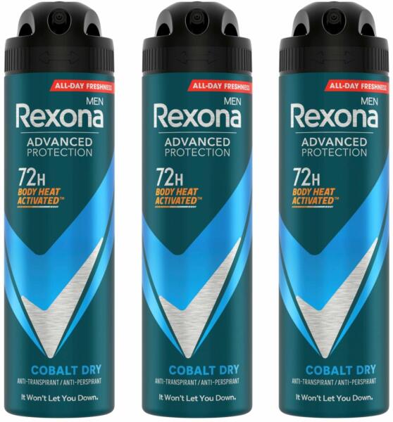 Rexona Men Advanced Protection Cobalt Dry izzadásgátló 150 ml. Legyen szó sportról, vagy a mindennapok rohanásáról, a Rexona Advanced Protection véd a legjobban! Szabadalmaztatott izzadásgátló technológiájának köszönhetően hatékonyan veszi fel a harcot az izzadás és kellemetlen testszagok ellen akár 72 órán át, frissítő illata pedig segít, hogy egész nap frissnek érez