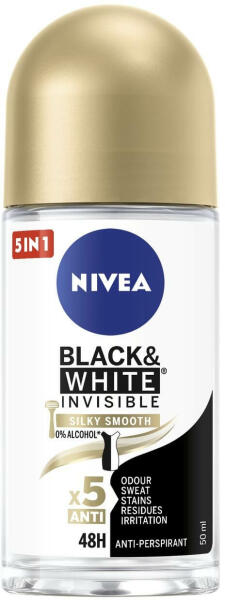 Nivea roll-on 50ml b&w invisible golyós dezodor Hivatalos magyarországi forgalmazótól. Leírás: Izzadásgátló golyós dezodor Hatékony izzadás szabályozás DryPlus rendszerrel Ásványi anyagokkal Bőrbarát hatása bőrgyógyászatilag igazolt NIVEA golyós dezodor Black & White Invisible Silky Smooth 50 ml-es kiszerelésben. Hatékony izzadás szabályozás - DryPlus rendszerre