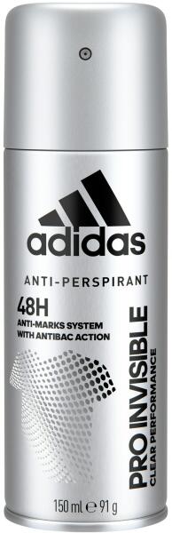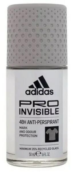 Az adidas Pro Invisible izzadásgátló roll-on 48 órás védelmet nyújt a nedvesség és a testszagok ellen. A formula megakadályozza a fehér és sárga foltok kialakulását, és gondoskodik arról, hogy még a fekete és fehér ruhák is foltmentesek legyenek. A friss, mégis meleg illat bőrös és fás jegyekkel gondoskodik a második bőr érzetről. A formula bőrgyógyászatilag teszte