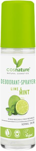 Cosnature dezodor spray lime-mal és mentával, 75 ml - A lime-ot és mentát tartalmazó Cosnature® dezodor spray hosszan tartó védelmet kínál a testszag ellen, és optimális ápolás mellett a frissesség érzését nyújta - A kímélő formula ellenőrzött bio termesztésből származó származó lime-kivonattal biztosít egész napon át tartó friss és kellemes illatot - Nem tartalm