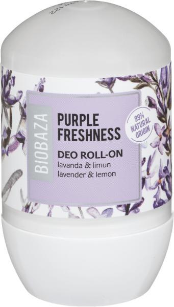 Biobaza deo roll on purple freshness 50 ml A citrus frissessége és a relaxáló levendula kombinációja hatékonyan véd a kellemetlen szagok ellen. Összetevők: AQUA, GLYCERIN, POTASSIUM ALUM (Natural Mineral Salts), AROMA* (lavender and bergamot), XANTHAN GUM, OLEA EUROPAEA (OLIVE) LEAF EXTRACT, SALVIA OFFICINALIS LEAF EXTRACT, PHENETHYL ALCOHOL, CAPRYLYL GLYCOL, LAVANDULA HYBRIDA OIL, CITRU