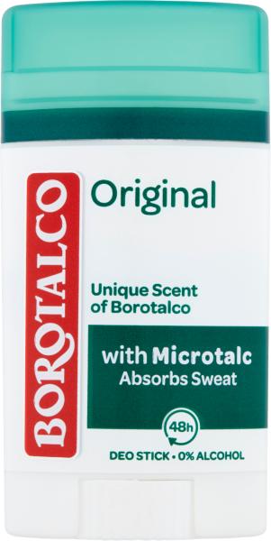 Gyártó: Borotalco Modell: Original (deo stick) 40ml Leírás: A félreismerhetetlen illatú szilárd dezodor 48 órás védelmet nyújt az izzadás ellen. Az izzadságot elnyelő Microtalkum tartalmú összetételének köszönhetően a dezodor szabályozza az izzadtságot és naponta biztosítja a száraz bőrt. Aktív anyagok: Microtalkum, a világ egyik legtisztább természetes ásványi any
