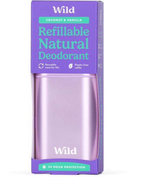 WILD kezdő csomag egy újratölthető trendi deo stift tartót és egy természetes deo stift utántöltőt tartalmaz A tiszta és egzotikus illat, prémium természetes összetevőkkel, mely egész napos védelmet biztosít. A Kókusz-Vanília illatú stift dezodor 24 órás védelmet nyújt izzadás ellen, miközben E-vitamin tartalma gyengéden ápolja a bőrt. A cserélhető dezodor stift ter