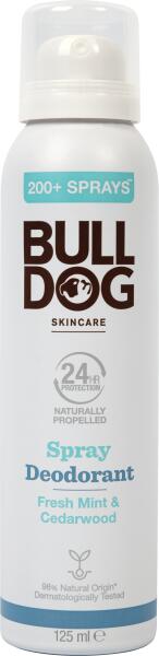 Bulldog Fresh Mint&Cedarwood Spray Deodorant, 125 ml, Dezodorok és izzadásgátlók férfiaknak, A kiváló minőségű Bulldog Fresh Mint&Cedarwood Spray Deodorant készítmény nélkülözhetetlen segítséget jelent az izzadás elleni mindennapi küzdelemhez. Tulajdonságok: hosszan tartó védelmet nyújt szagsemlegesítő hosszan tartó komfortérzetet nyújt kifejezetten a férfi b