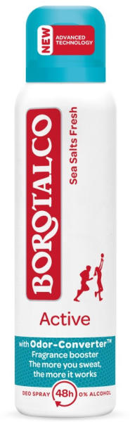 A borotalco active egy különleges dezodor forradalmi odor-converter szagátalakító technológiával: az izzadásra, és a mozgásra érzékeny mikrokapszulák extra illatanyagot bocsátanak ki magukból éppen akkor, amikor erre a legnagyobb szükséged van, folyamatosan friss illat, minél többet izzadsz, annál erősebben dolgozik a deo. A borotalco által nyújtott száraz védelem külön