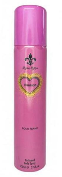 Lucien Lebron Passion Női Dezodor 75ml Lucien Lebron Passion Női Dezodor 75ml illata zamatos mandarin és bergamott ragyogó mosolyra fakasztó jegyeivel bontakozik ki. Ezután a selymes jázmin és legendás grasse-i rózsa eszenciáinak gyengéd, virágos simogatását érzi majd. Fináléját krémes pézsmával, cédrussal és érzéki pacsulival ölelkező meleg szantálfa hatja át. Lucien