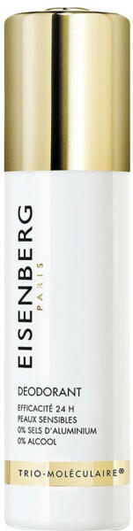 Az EISENBERG bőrápolók gyengédsége a hatékony, 24 órás hatásért. Innovatív formula, mely antibakteriális hatásának köszönhetően 24 órán keresztül ellenáll a szagoknak. Alumíniumsók, parabének, alkohol és színezék nélkül, gyengéd ápoló, mely Trio-Moléculaire® Formulát tartalmaz, a tiszta és lágy bőrért. A legérzékenyebb bőrre is alkalmas, és szőrtelenít