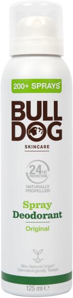 Bulldog Original Spray Deodorant, 125 ml, Dezodorok és izzadásgátlók férfiaknak, A kiváló minőségű Bulldog Original Spray Deodorant készítmény nélkülözhetetlen segítséget jelent az izzadás elleni mindennapi küzdelemhez. Tulajdonságok: szabályozza az izzadást és a bőr nedvességét megelőzi az irritációt és nyugtatja a bőrt hosszan tartó frissességérzetet kelt haté